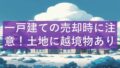 一戸建て査定のポイント土地の境界が不明な一戸建ては売却できる? 境界が確定していない土地の一戸建てを売却することも可能ですが、不安要素がある不動産(隣人とのトラブルになりかねない等)という目で見られてしまいますので、通常の相場よりも安く売却せざるを得ないことになります。2023.12.08一戸建て査定のポイント